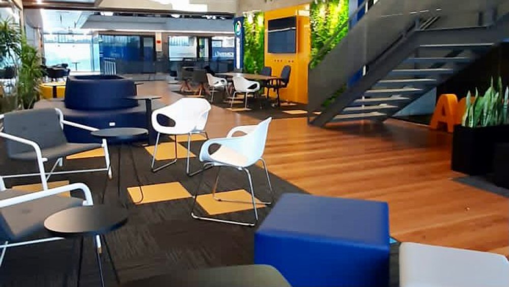 Mais um projeto corporativo de sucesso, entregue pela Oneda Móveis! Para a empresa acima, o projeto de interiores, realizado pela @asarquitetura prezou por cores primárias e vivas, com móveis que agregassem conforto e descontração. Além disso, design e inovação estão presentes nas poltronas e cadeiras, escolhidas a dedo para compor o ambiente. Conheça nossas alternativas para sua empresa.