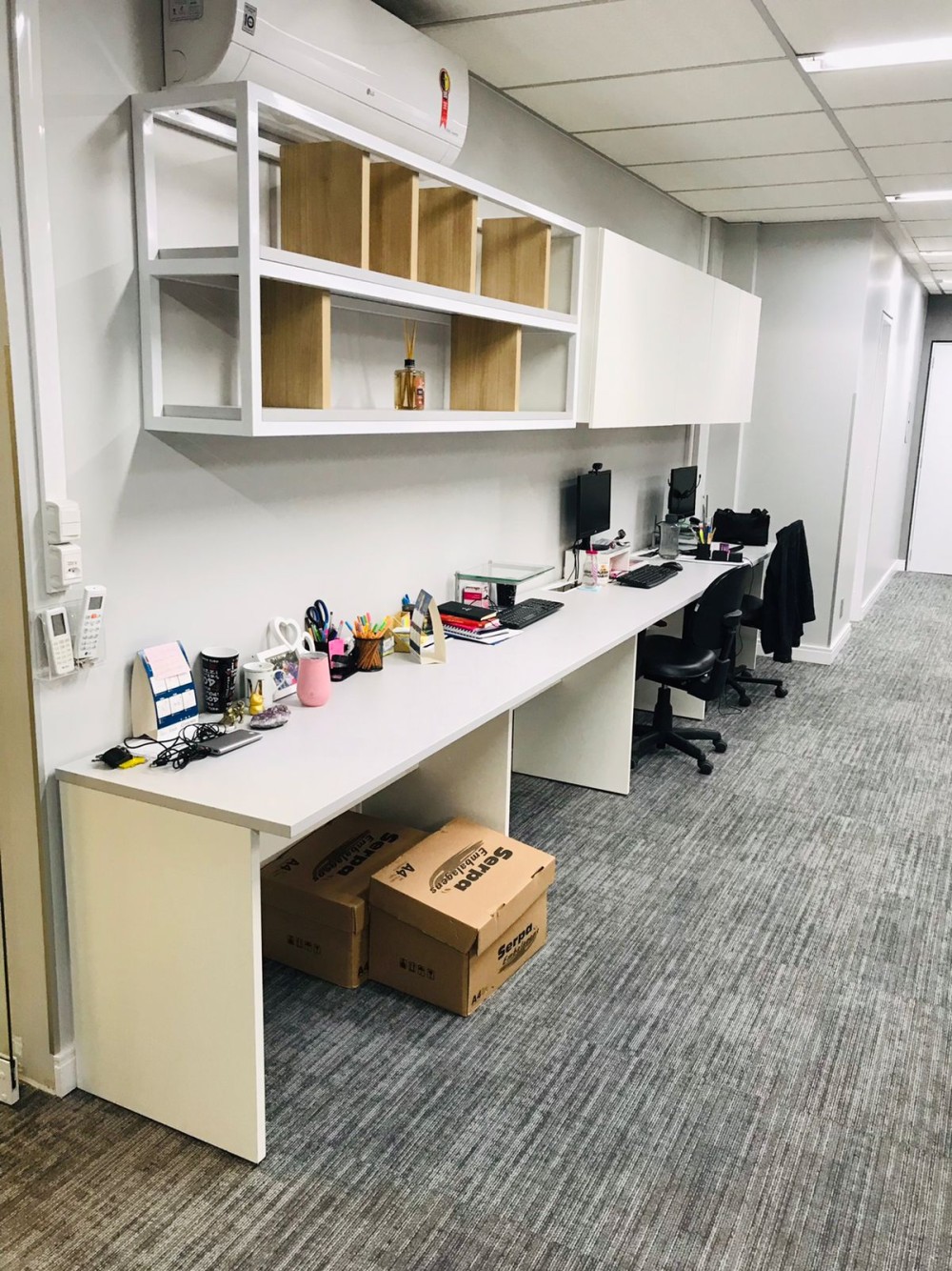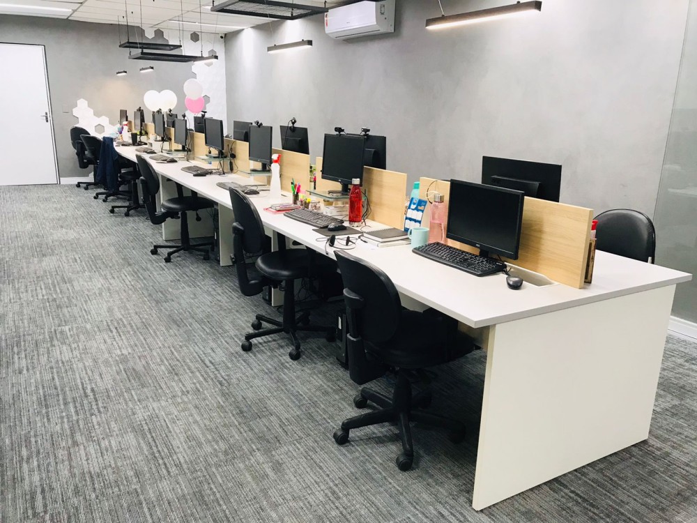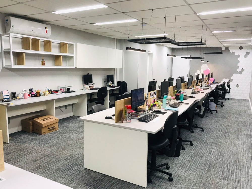 Para o Grupo Selecionar, plataformas de trabalho e móveis funcionais foram selecionados para atender a demanda da equipe. Em tons brancos, os móveis tem a capacidade de ampliar o espaço e torná-lo mais clean e profissional. Como cada empresa tem seu estilo, a Oneda se preocupa em atender todas as soluções para mobiliários de qualidade para seu escritório.