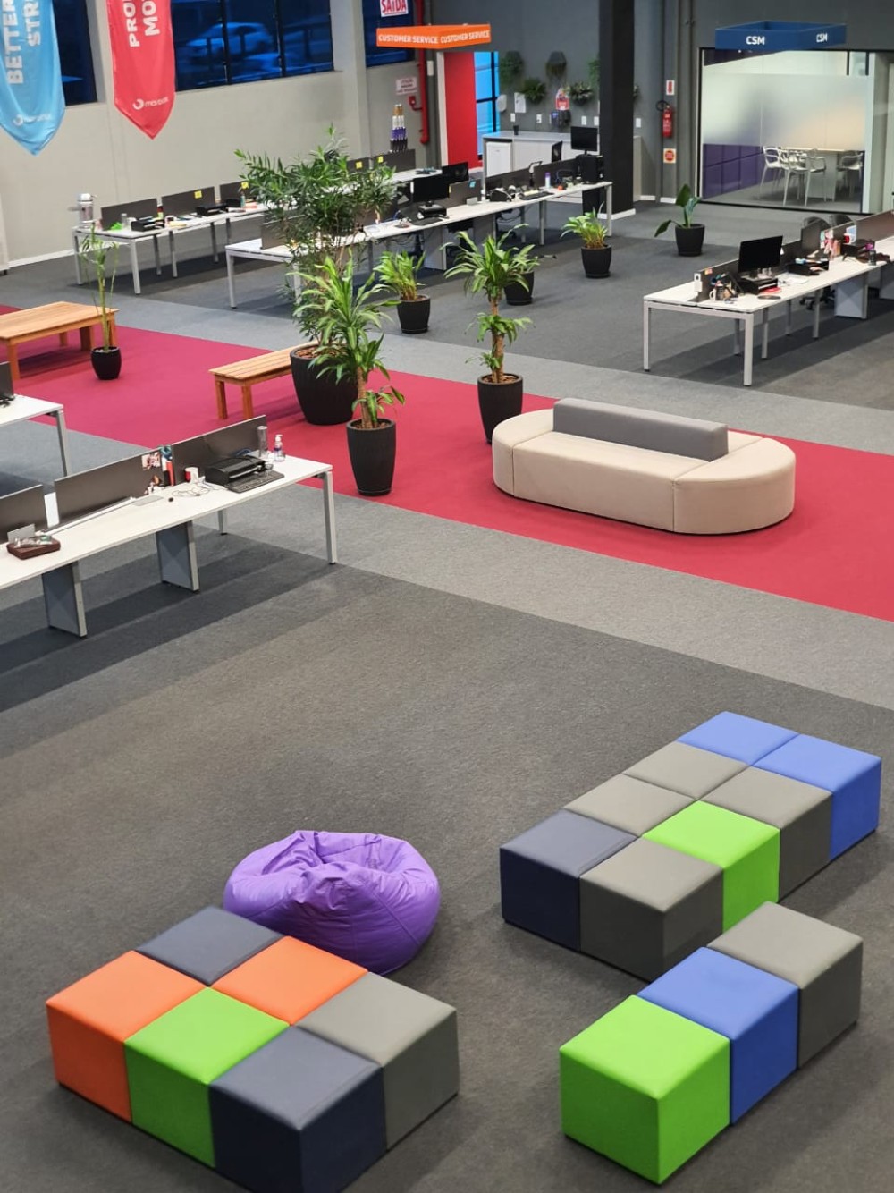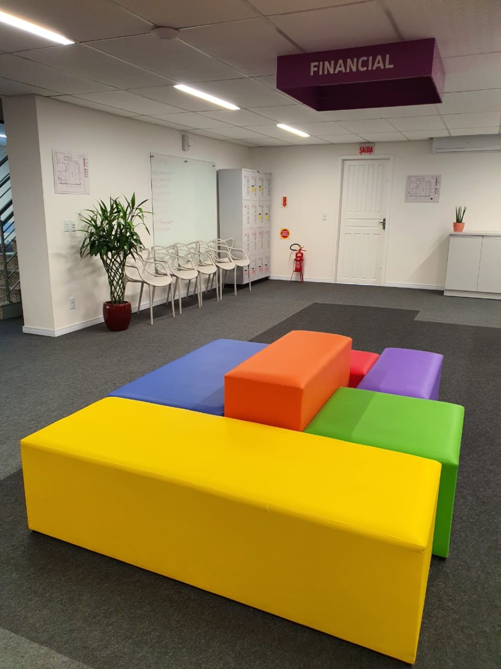 Móveis que proporcionam sofisticação e elegância, viabilizando tanto móveis corporativos, marcenaria e cadeiras corporativas, tudo dentro das normas técnicas de ergonomia. Em tons neutros, os móveis tem a capacidade de ampliar o espaço e torná-lo mais clean e profissional. Plataformas de trabalho e móveis funcionais foram selecionados para atender a demanda da equipe.