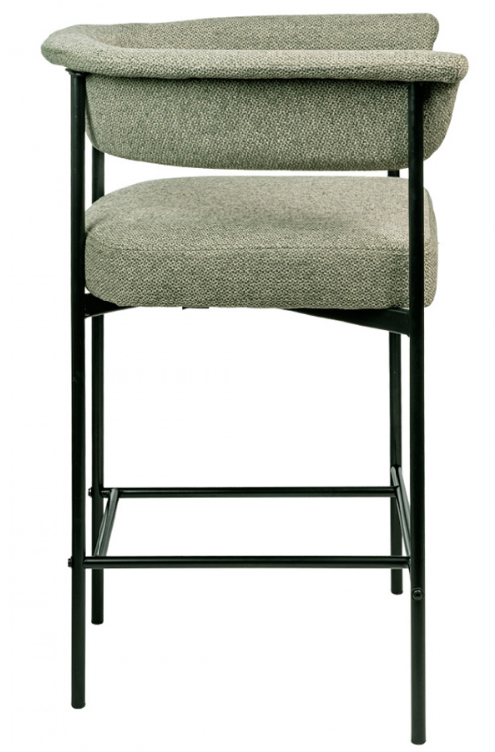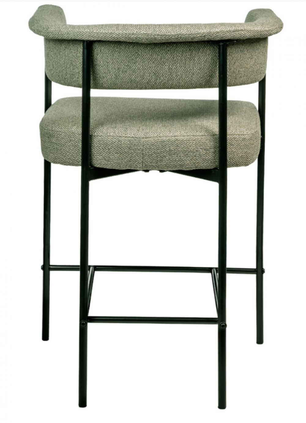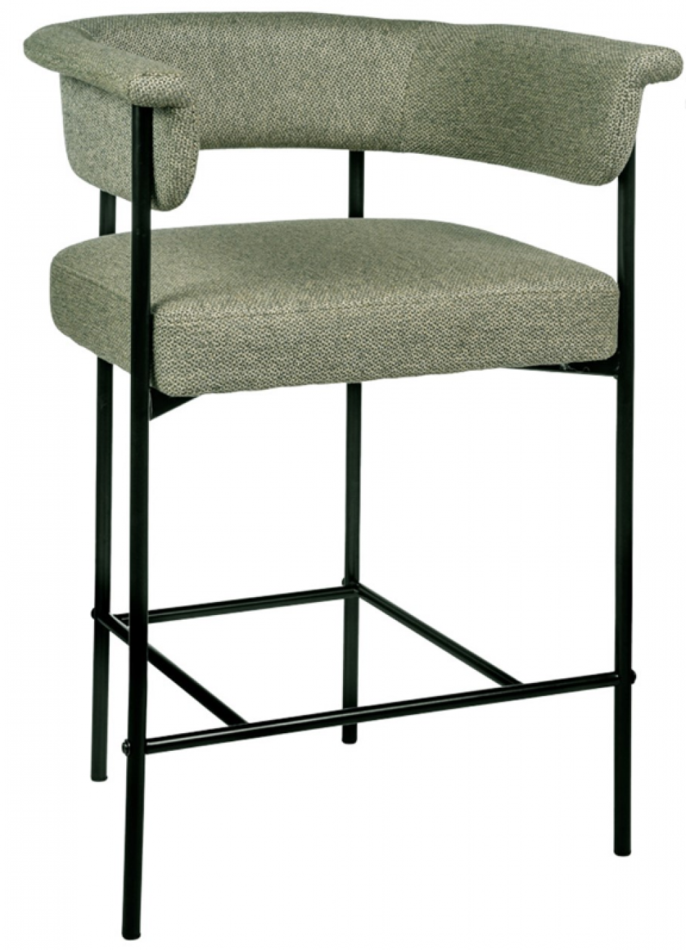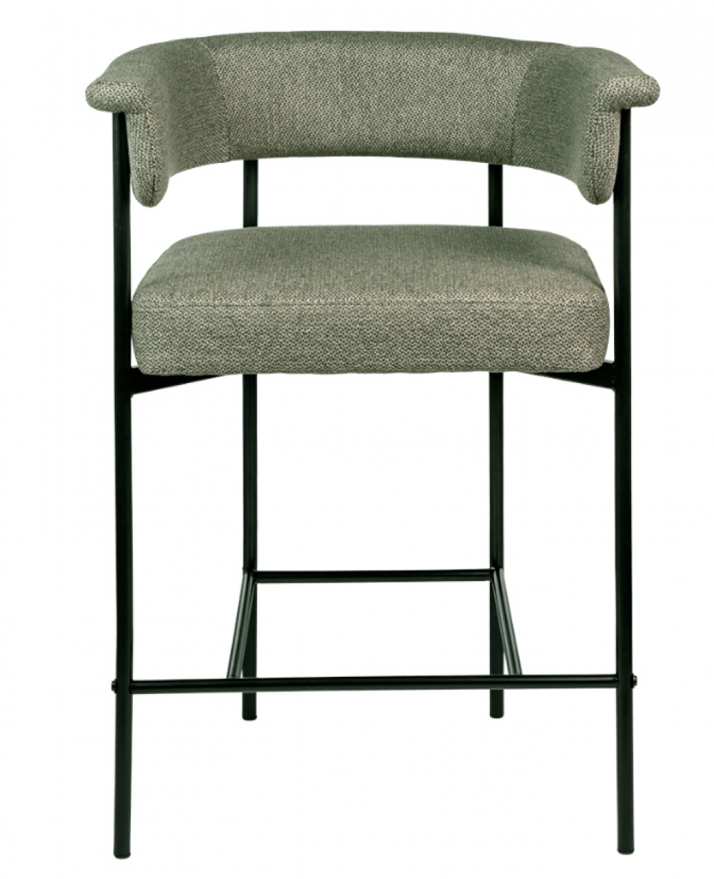 Banqueta estofada em tecido repelente à água e base em aço pintada à pó.