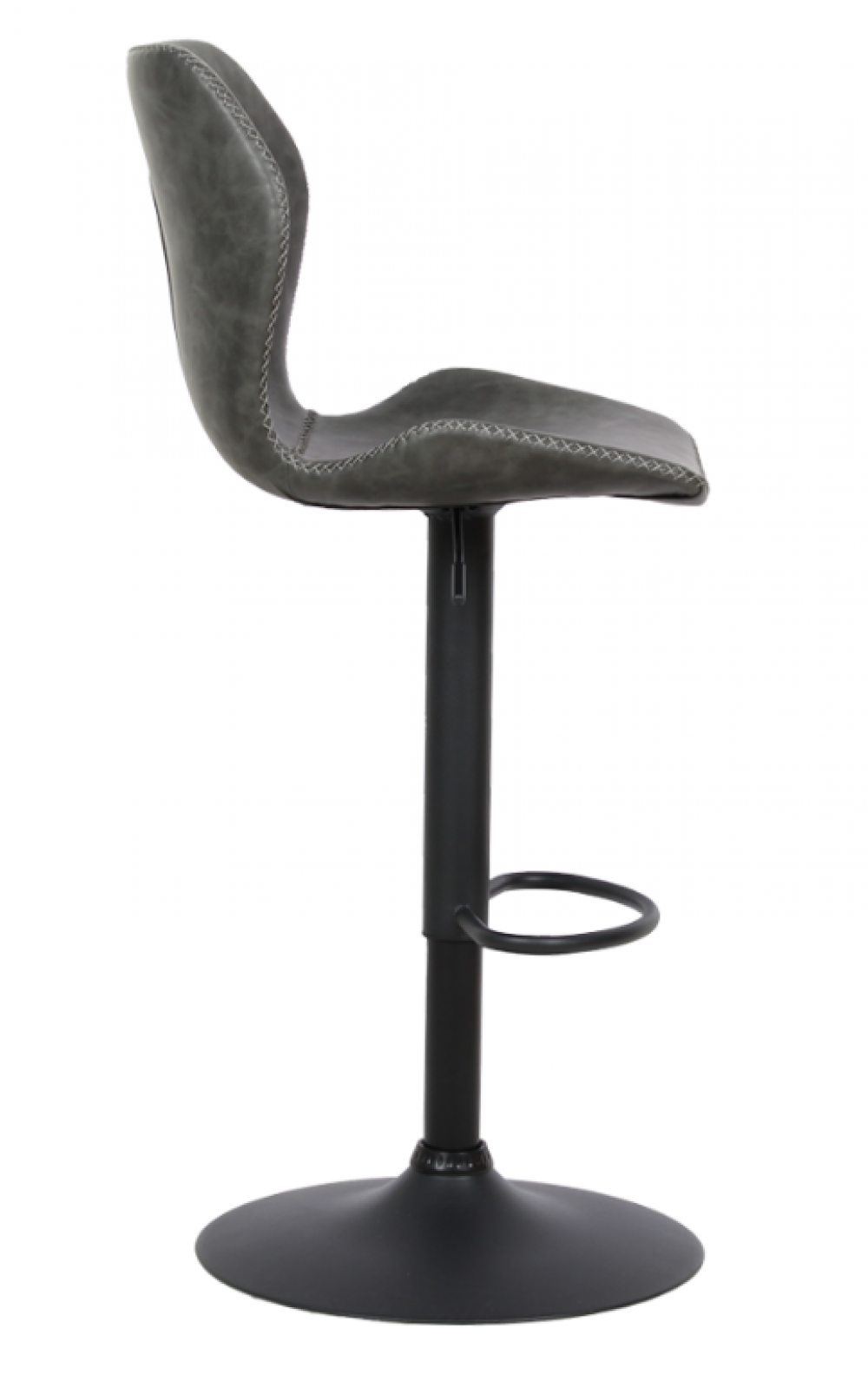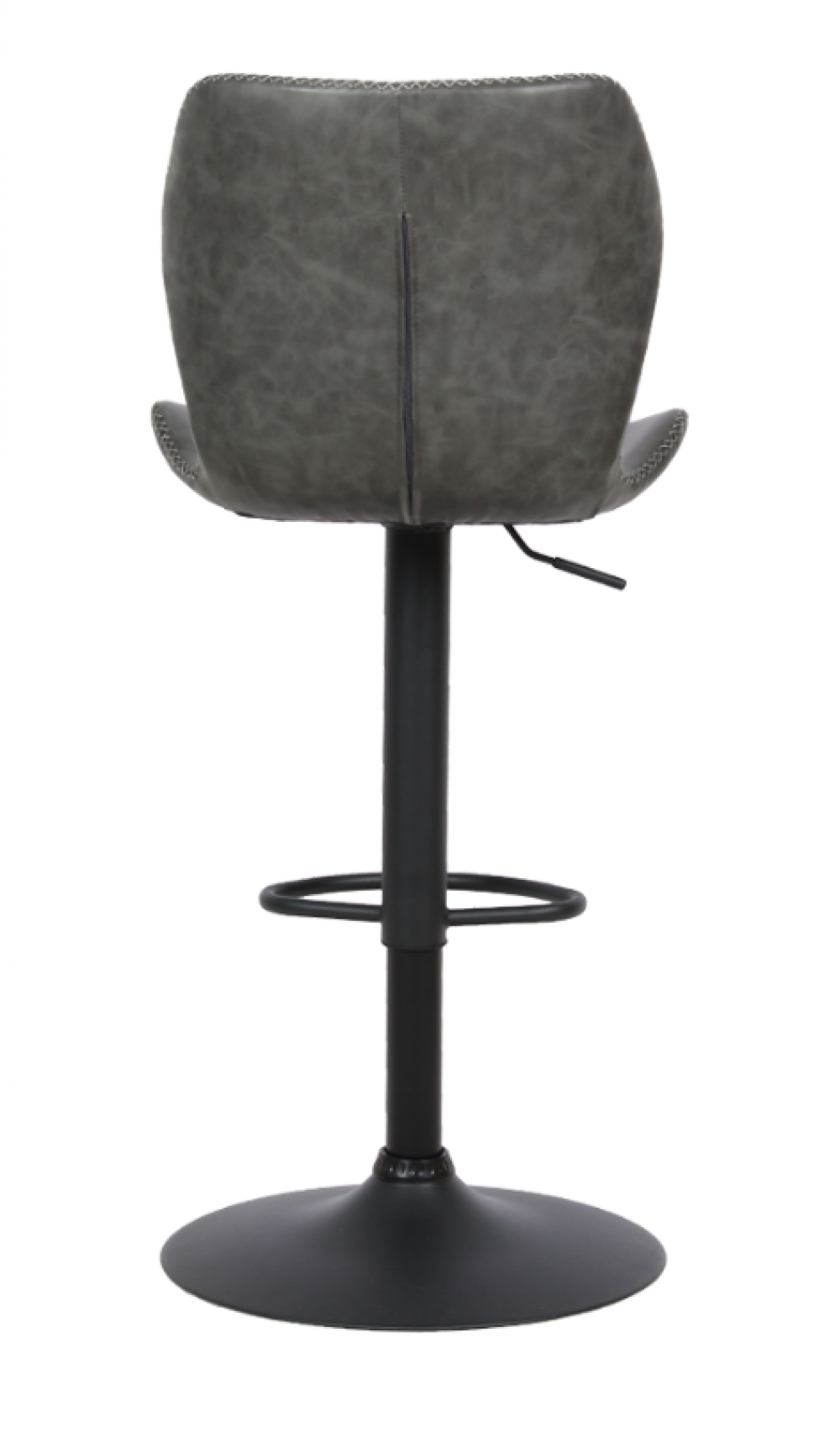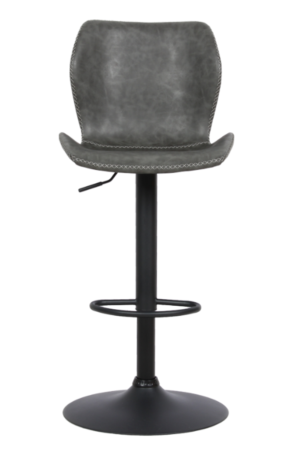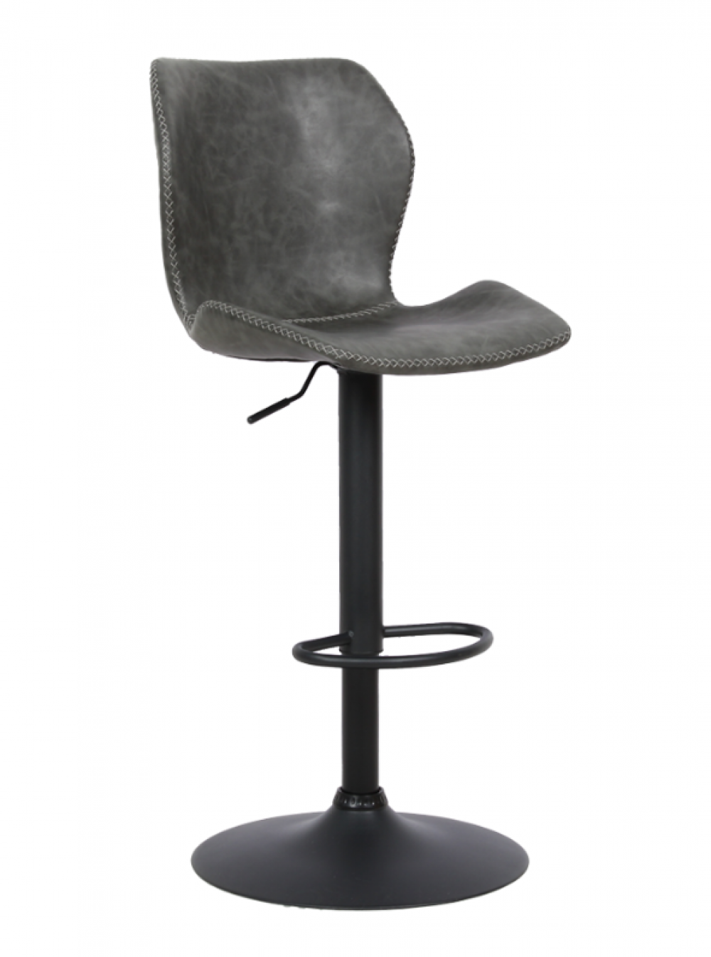 Banqueta estofada em poliuretano • Base disco giratória com regulagem de altura em aço pintada a pó.