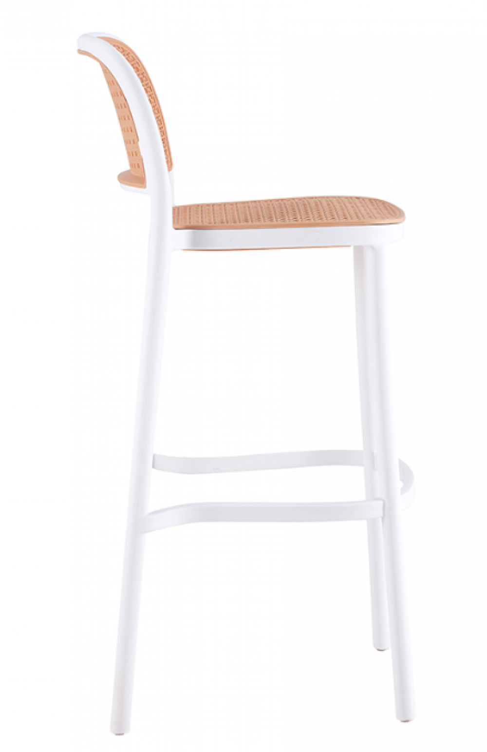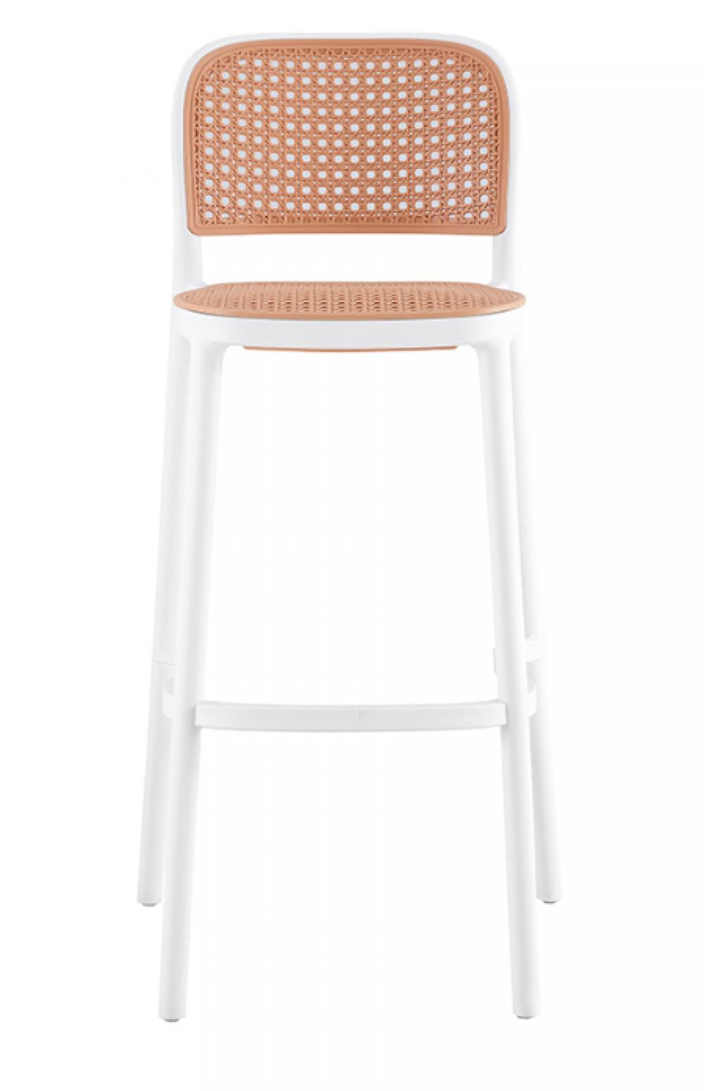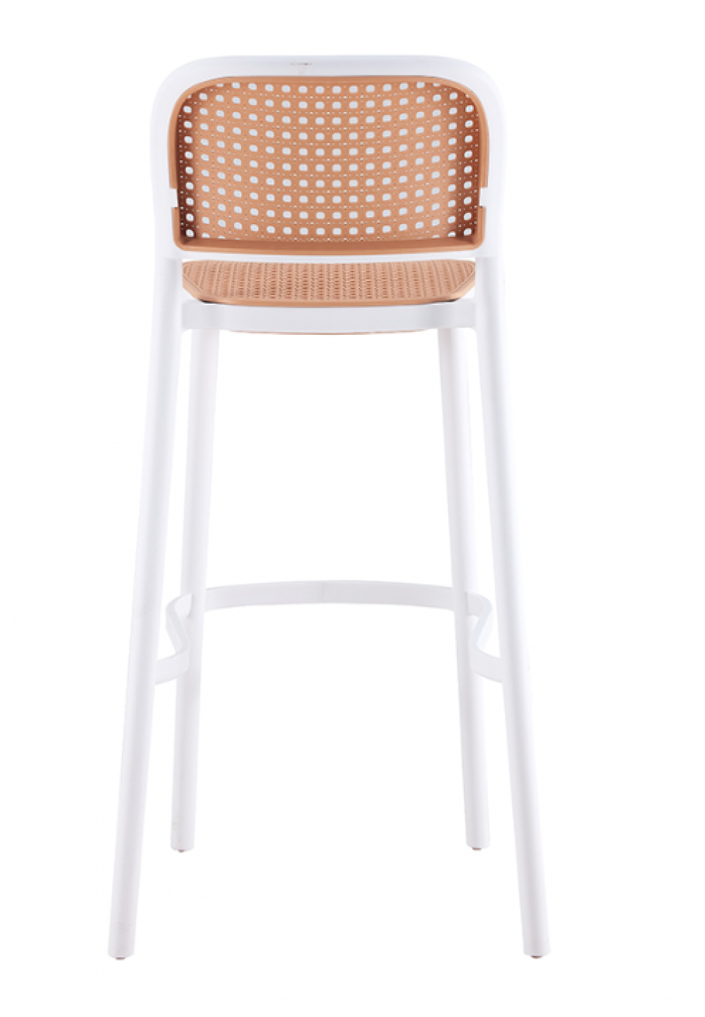 Banqueta em polipropileno com assento e encosto simulando tela sextavada, com proteção UV.