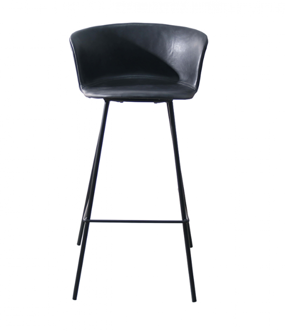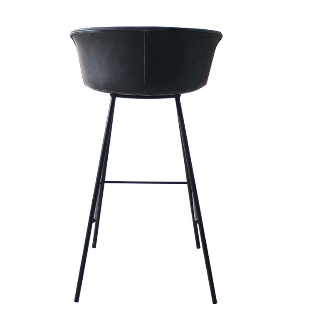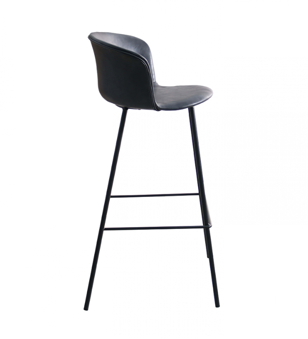 Banqueta estofada em poliuretano com base em aço pintado a pó.