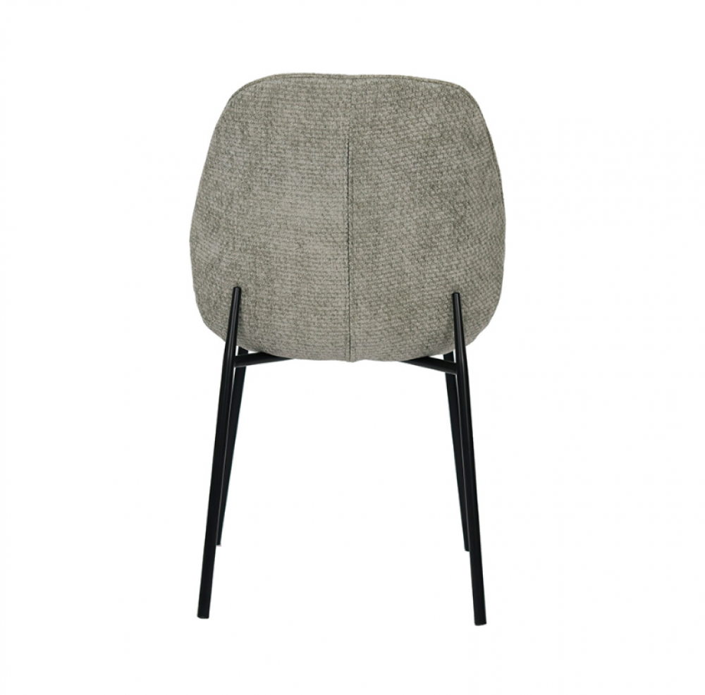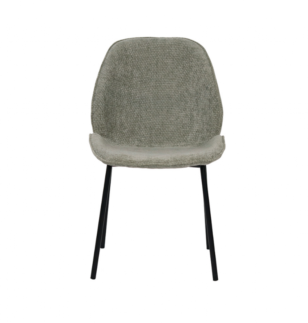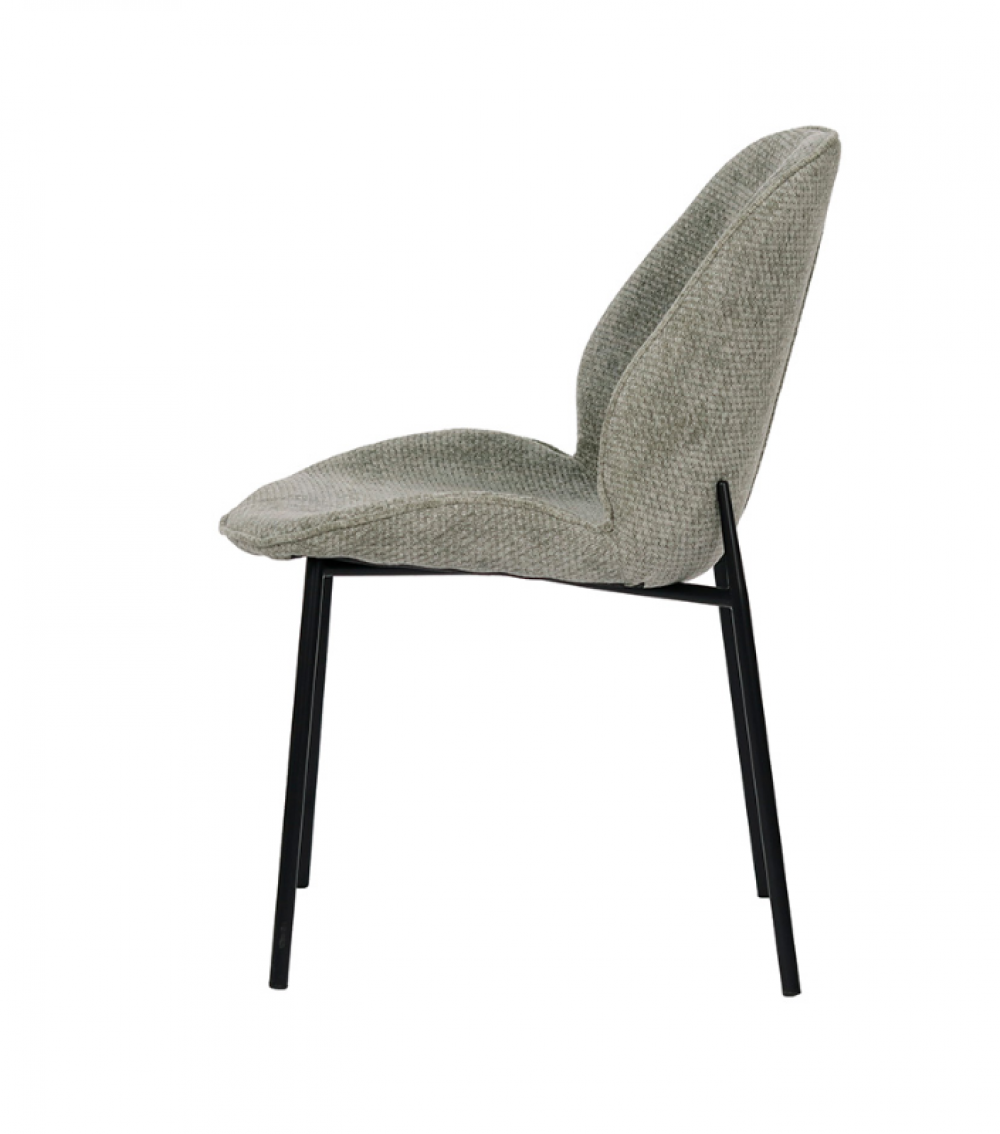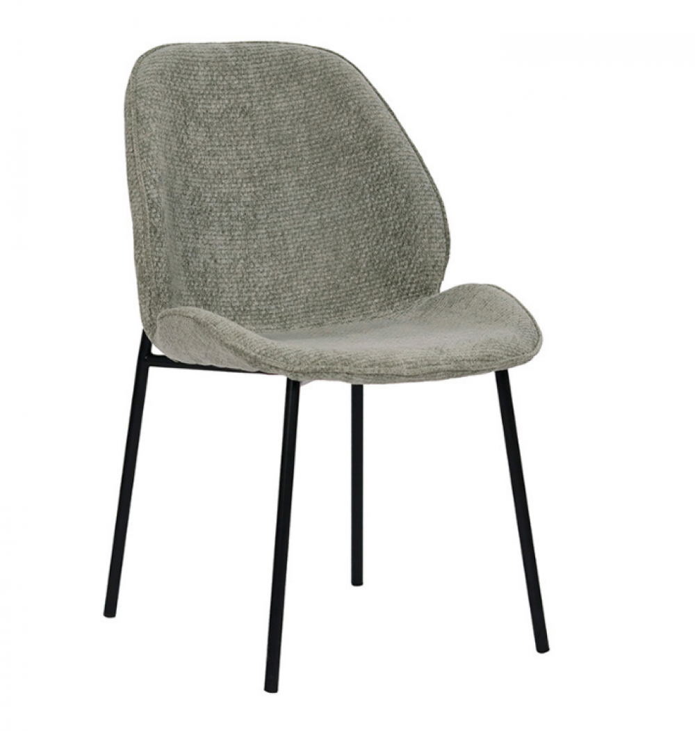 Cadeira estofada em tecido e base em aço pintada à pó.