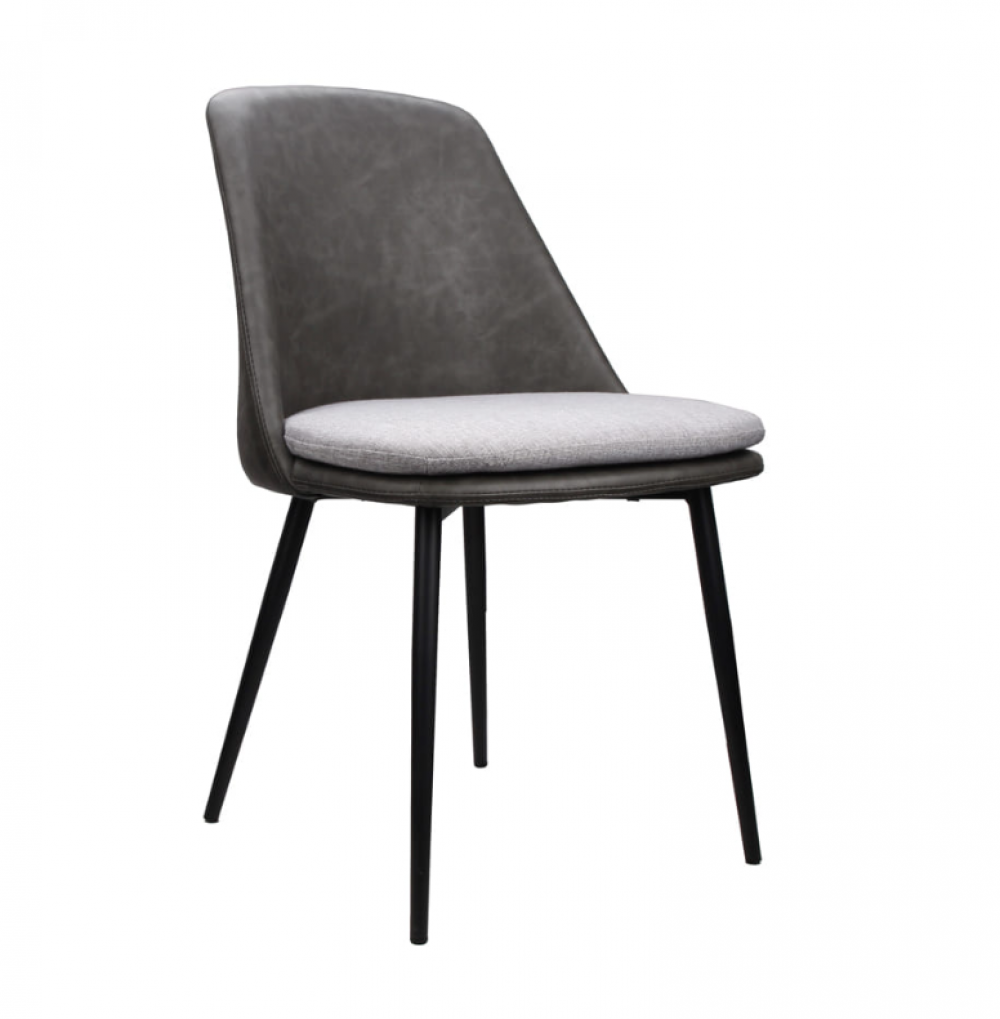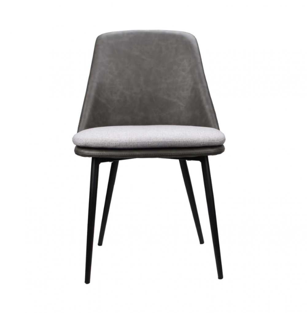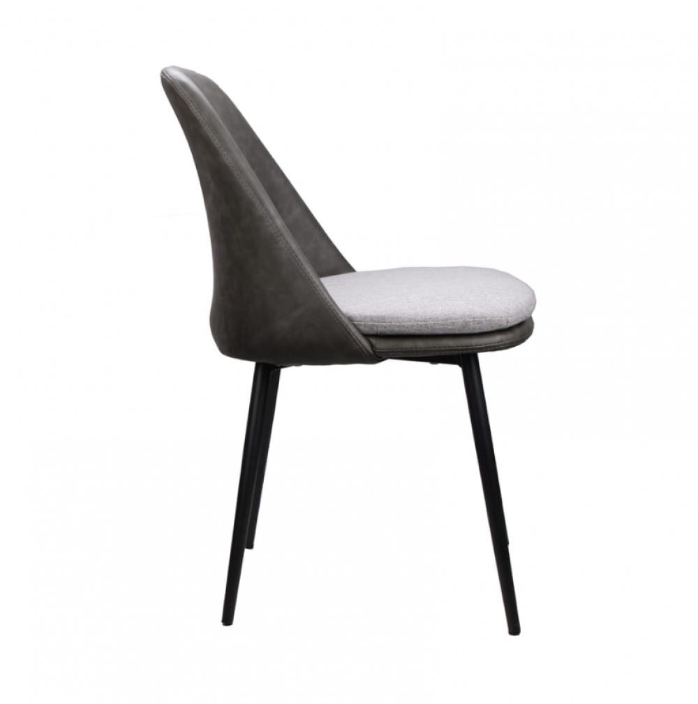Cadeira estofada em poliuretano (PU) e linho • Base em aço pintada a pó.
