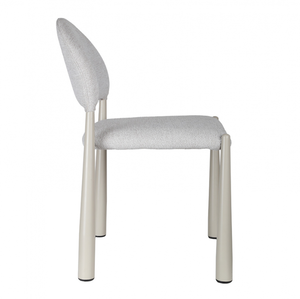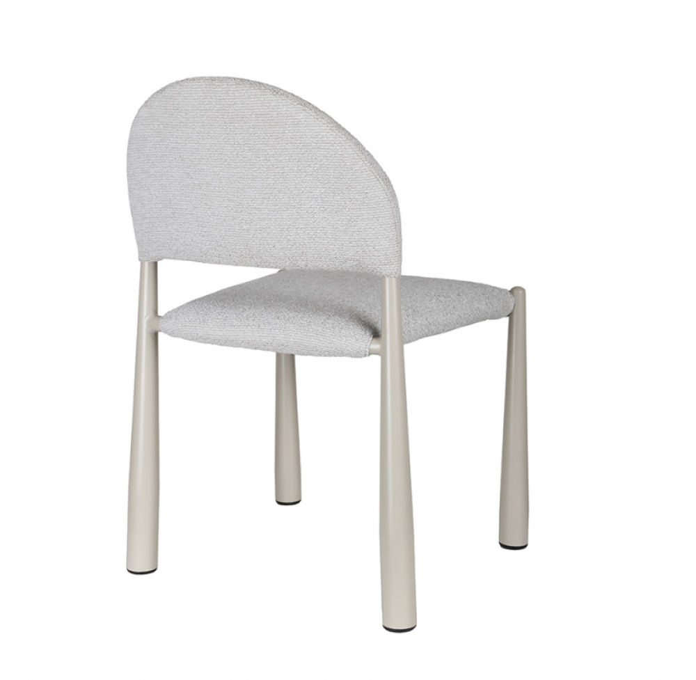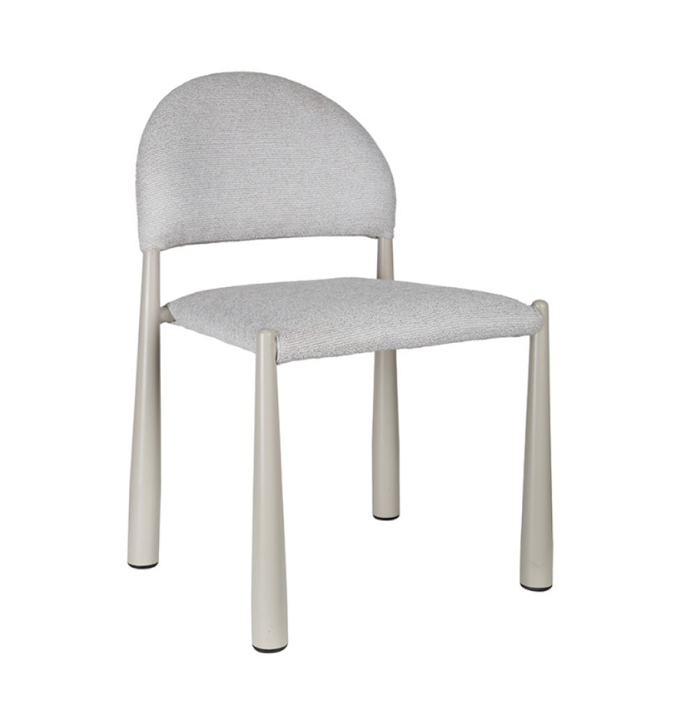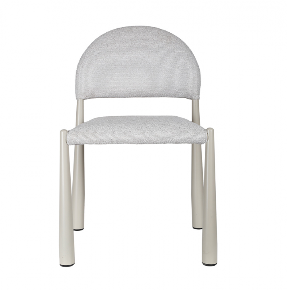 Cadeira estofada em tecido e base em aço pintada à pó.