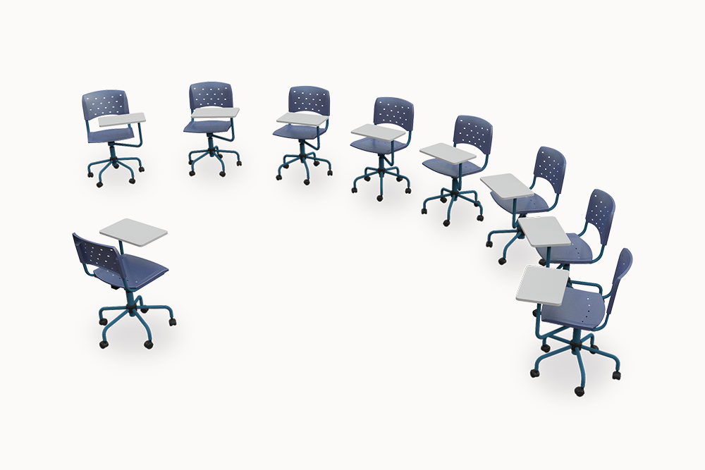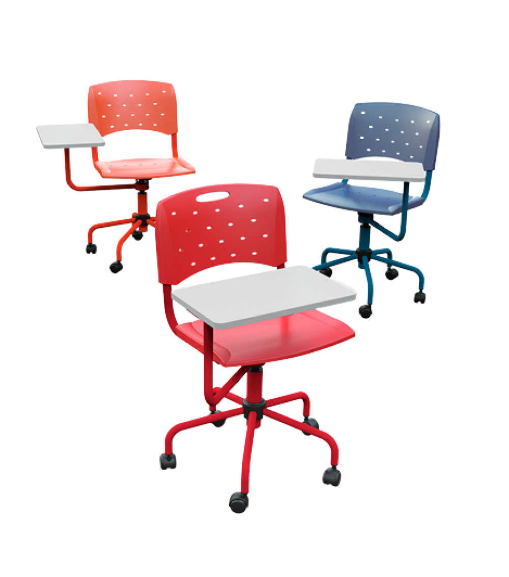 Inspirada na natureza, a linha Viva traz tonalidades exclusivas para serem combinadas com diversas configurações, adaptando-se a qualquer ambiente. Além da variedade de cores, os produtos apresentam design Cavaletti, exclusivo e mais ergonômico. A cadeira Viva com prancheta 360º possibilita fácil acesso e mobilidade, pois permite ser utilizada no lado esquerdo ou direito, na posição longitudinal, horizontal ou inclinada. Ideal para reajustes de layout, visando promover a interação entre participantes em atividades de aprendizado de maneira ativa e em grupo, com paleta de cores exclusivas para personificar os ambientes coletivos.