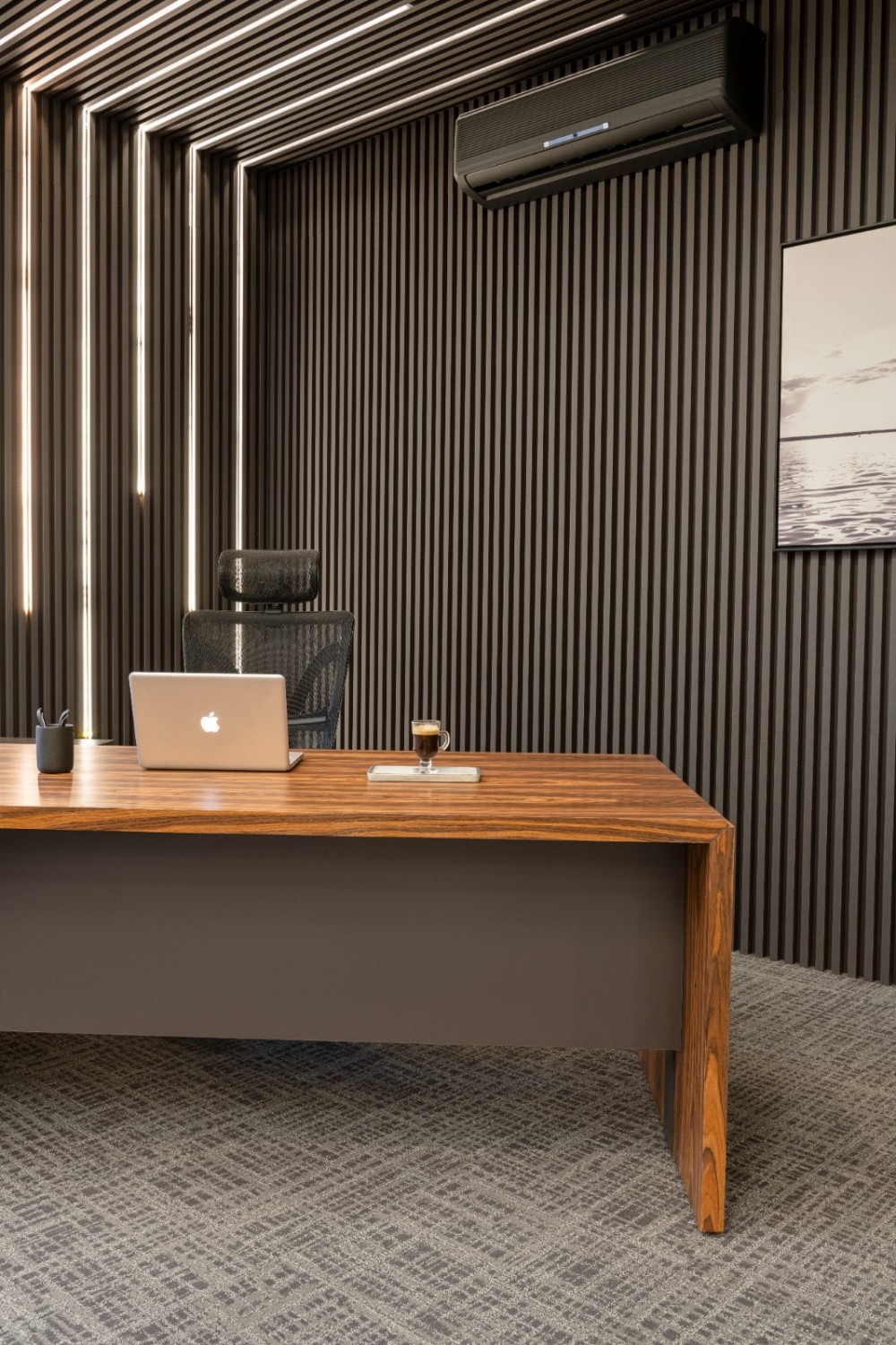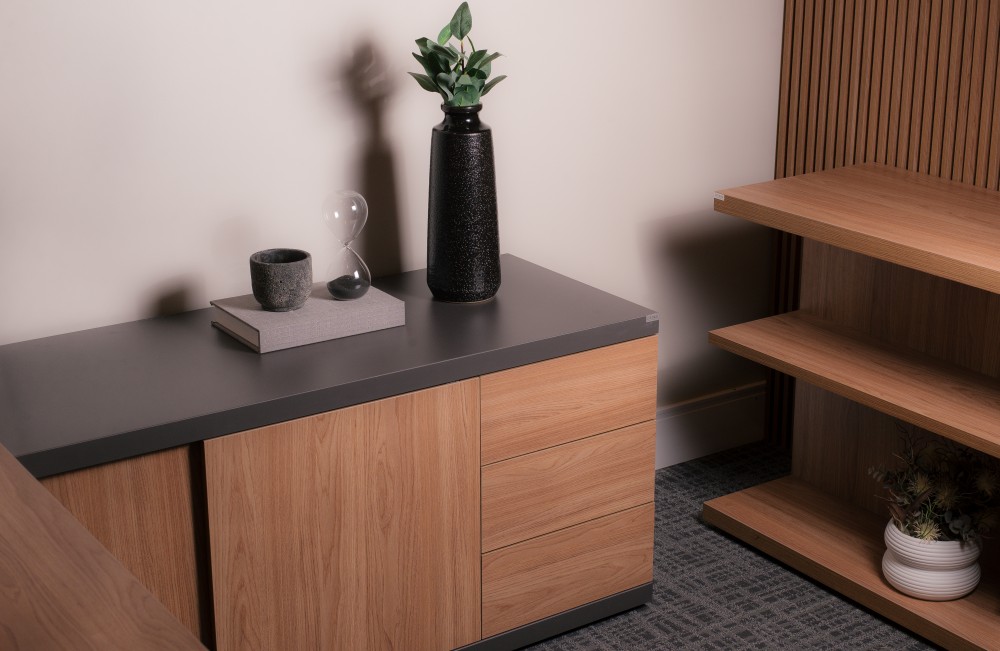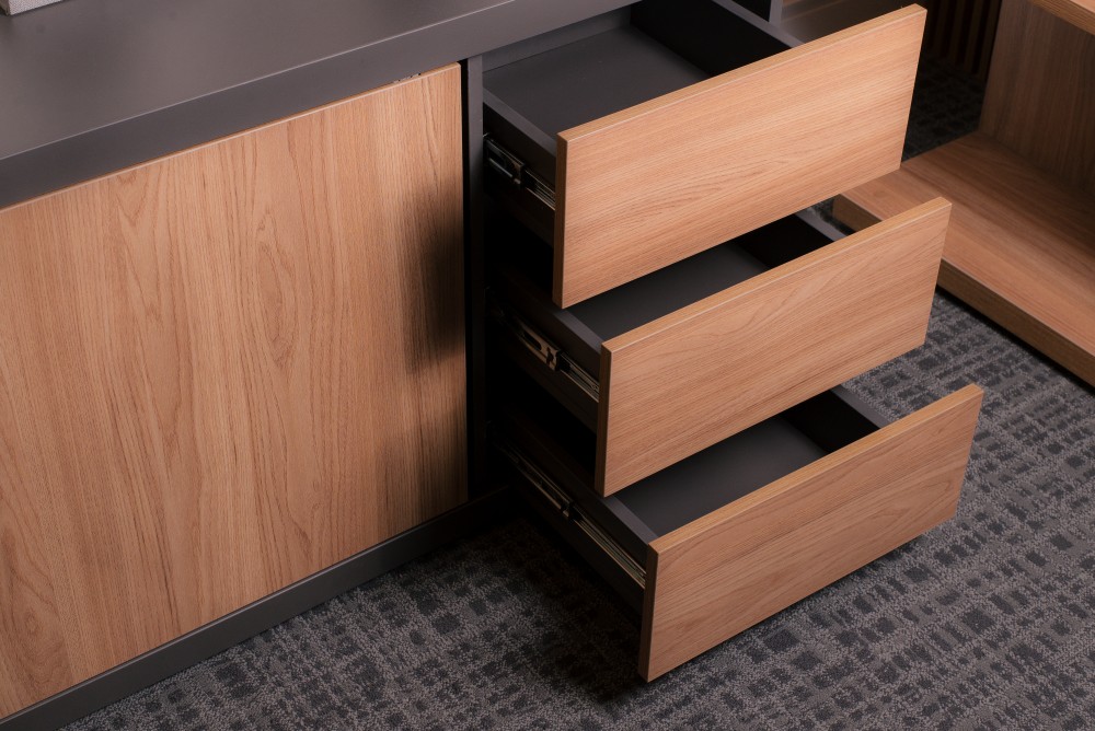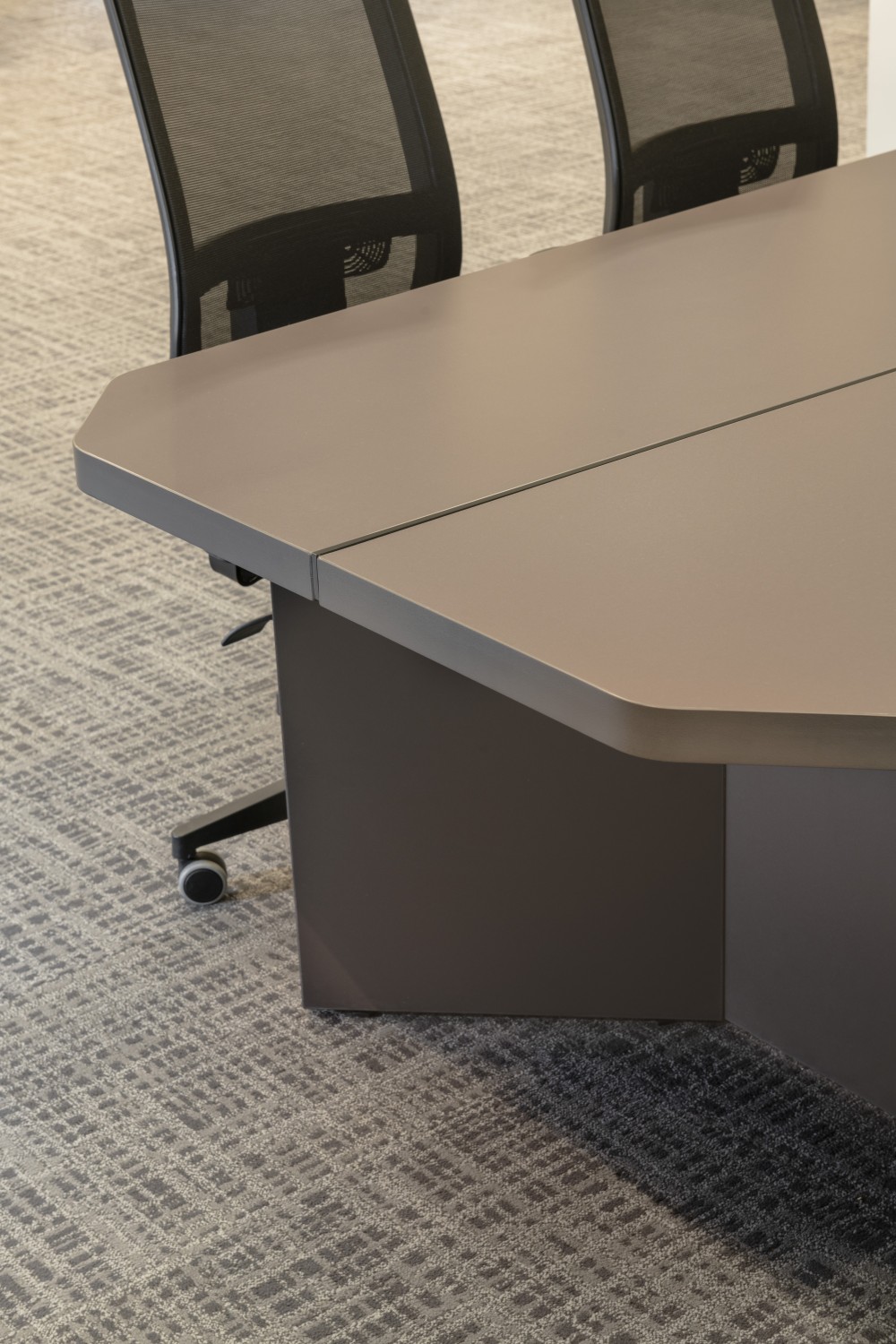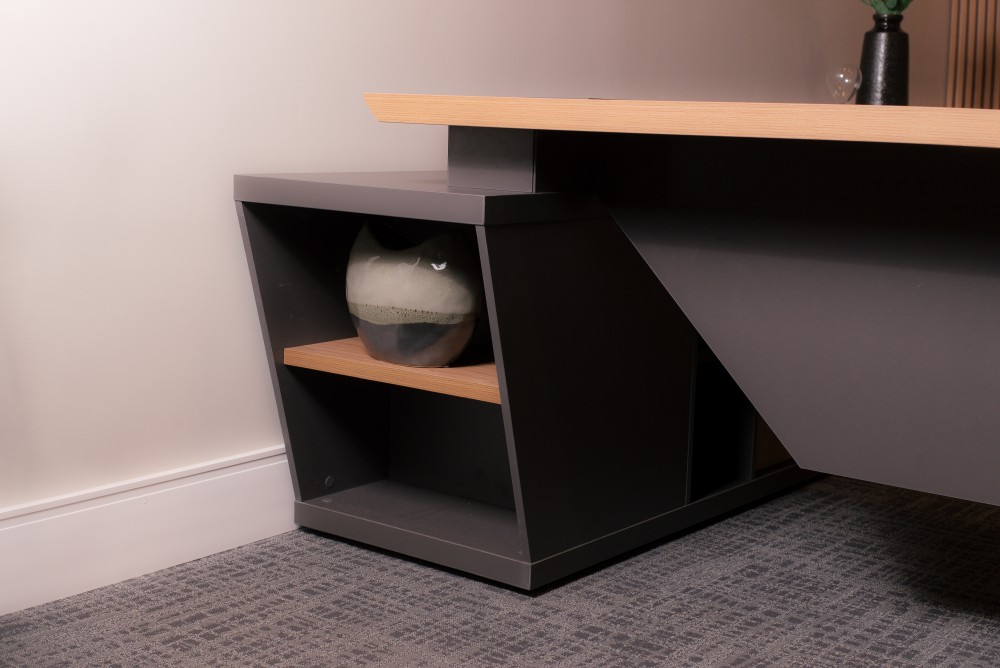Combinando design, qualidade e robustez, a linha Dom apresenta soluções para escritórios diretivos e ambientes de reunião. Com tampos de 40mm com acabamentos de 45 graus e opções de cores requintadas, essa linha é perfeita para áreas gerenciais e de diretoria.