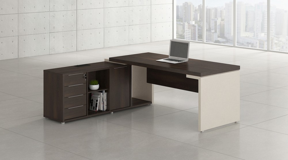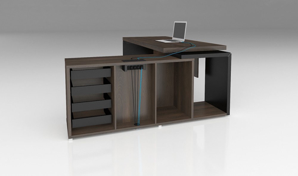 A linha Edge é uma linha direcionada para ambientes diretivos e de reuniões, onde são necessárias soluções práticas para instalações elétricas. Produto inspirado no design italiano, com tampos de 50mm de espessura em Tamburato, além de cortes em ângulo 45º, que proporciona destaque e sofisticação para os ambientes.
