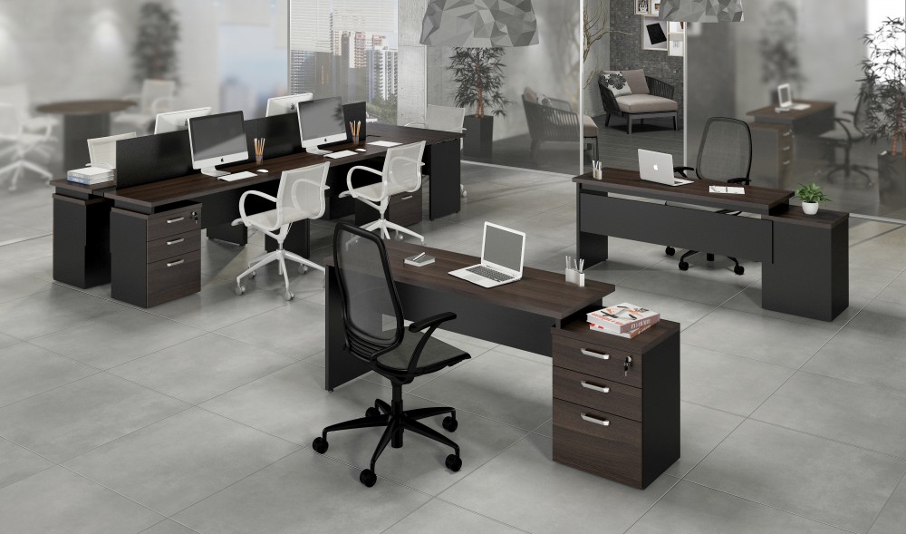 Uma linha com diversas opções de produtos, que visam atender de forma simples e prática as necessidades dos usuários. Seus tampos de 30mm de espessura fornecem sobriedade aos ambientes nos quais são empregados. Os produtos da linha se encaixam muito bem às mais variadas necessidades do mercado, sendo indicados para ambientes de staff e profissionais liberais.