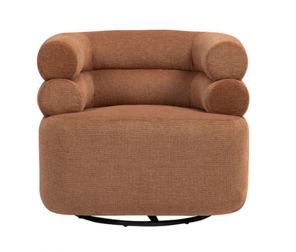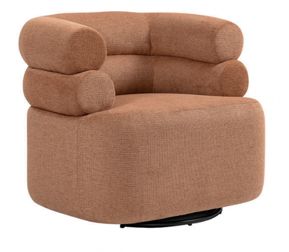Poltrona giratória estofada em tecido repelente à água e base em aço pintada à pó